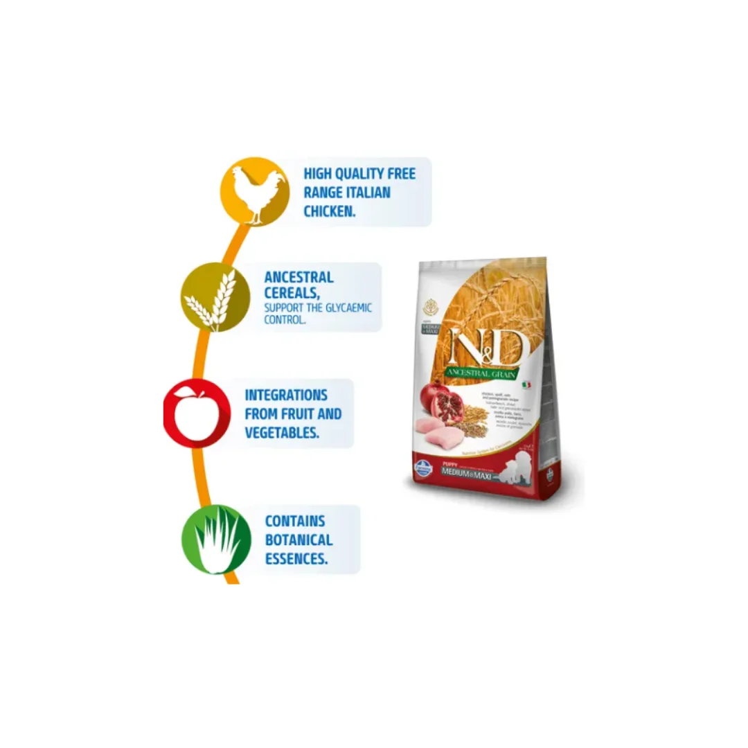 Farmina N&D AG Medium & Maxi Breed Dry Puppy Food Chicken & Pomegranate 2.5kg